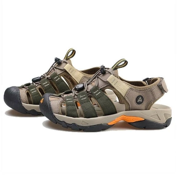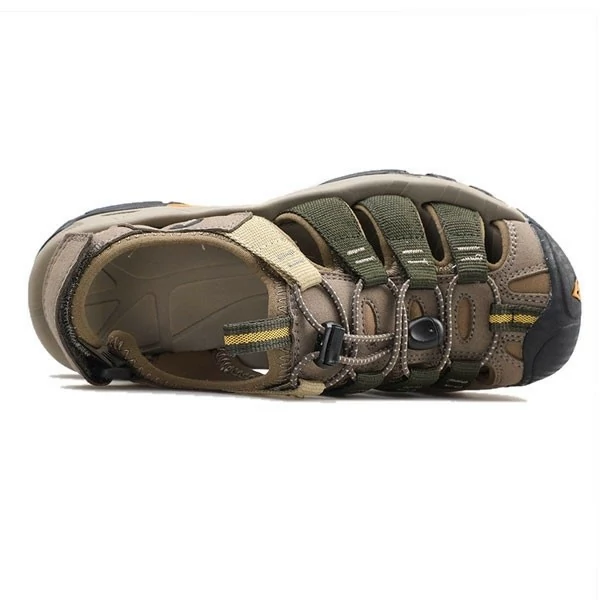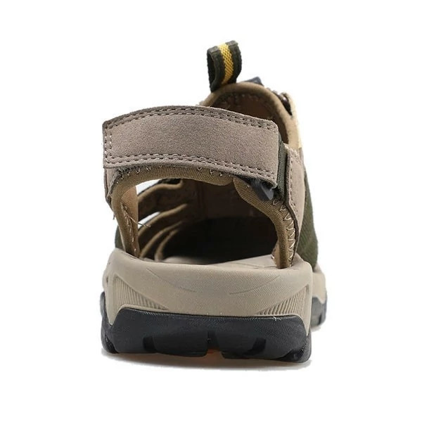 صندل مردانه هومتو humtto رنگ سبز مورد استفاده جهت پیاده روی، آب نوردی، دره نوردی، طبیعت گردی، کوهنوردی، سفر، استفاده شهری برای کف آن از لاستیک به همراه EVA استفاده شده است. لاستیک موجب چسبندگی و EVA نیز موجب انعطاف پذیری صندل می شود. به منظور حفاظت بیشتر در بخش نوک انگشتان پا یک محافط سه لایه قرار داده شده است. دارای بند استاپر دار برای تنظیم رو و اندازه دور مچ پا دارای ضربه گیر پنجه دارای زیره ضد لغزش و ضد سایش طراحی پنجه به صورت پهن دارای کفی عاج دار و نرم مشخصات: جنس رویه: چرم مصنوعی و پارچه مقاوم در برابر سایش جنس داخل: لاستیک نرم